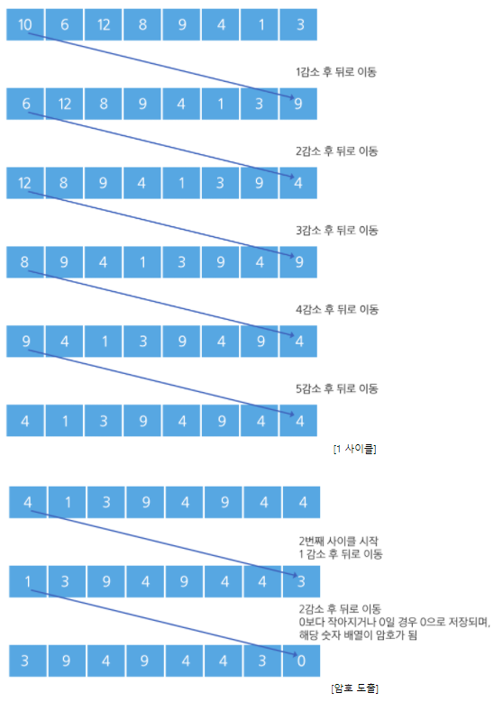 - 첫 번째 숫자를 1 감소한 뒤, 맨 뒤로 보낸다.