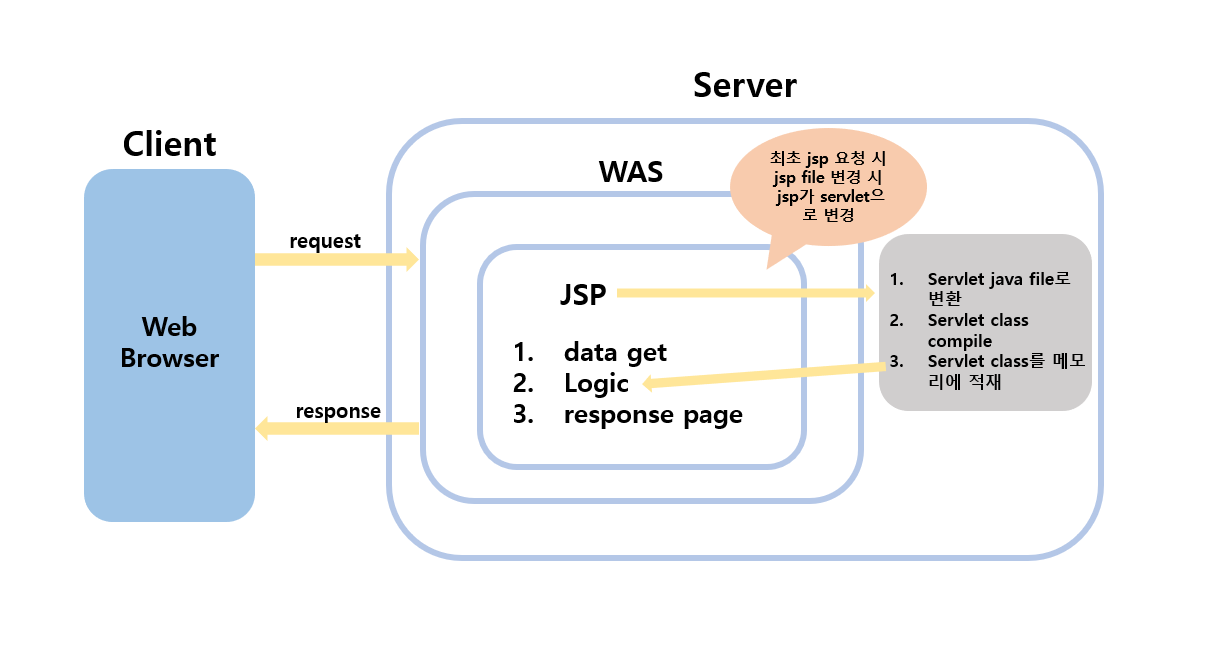 JSP Scriptlet : JSP페이지에서 자바 코드를 실행할 때 사용되는 코드의 블록