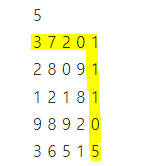 System.out.printf("Problem %d: %d\n", ++no, ans[N - 1][N - 1]);