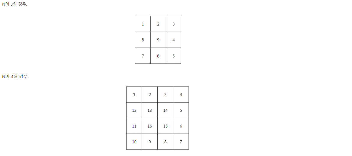 다음과 같이 정수 N을 입력 받아 N크기의 달팽이를 출력하시오.