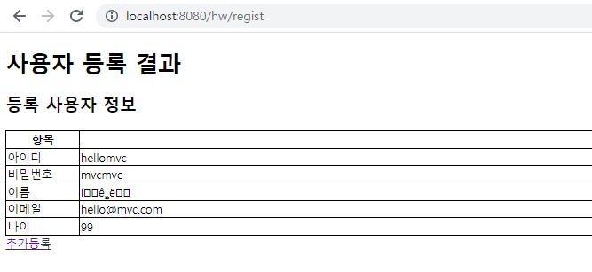 현재는 filter설정을 하지 않아 한글이 깨져나온다. 다음포스팅에서 filter설정을 알아보자.