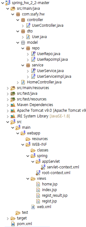 - Spring DI 예제에서 사용했던 프로젝트를 SpringMVC패턴을 적용한다.