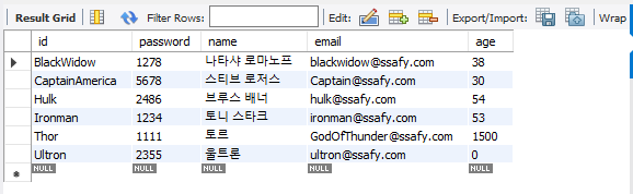 VALUES(#{id}, #{password}, #{name}, #{email}, #{age} )