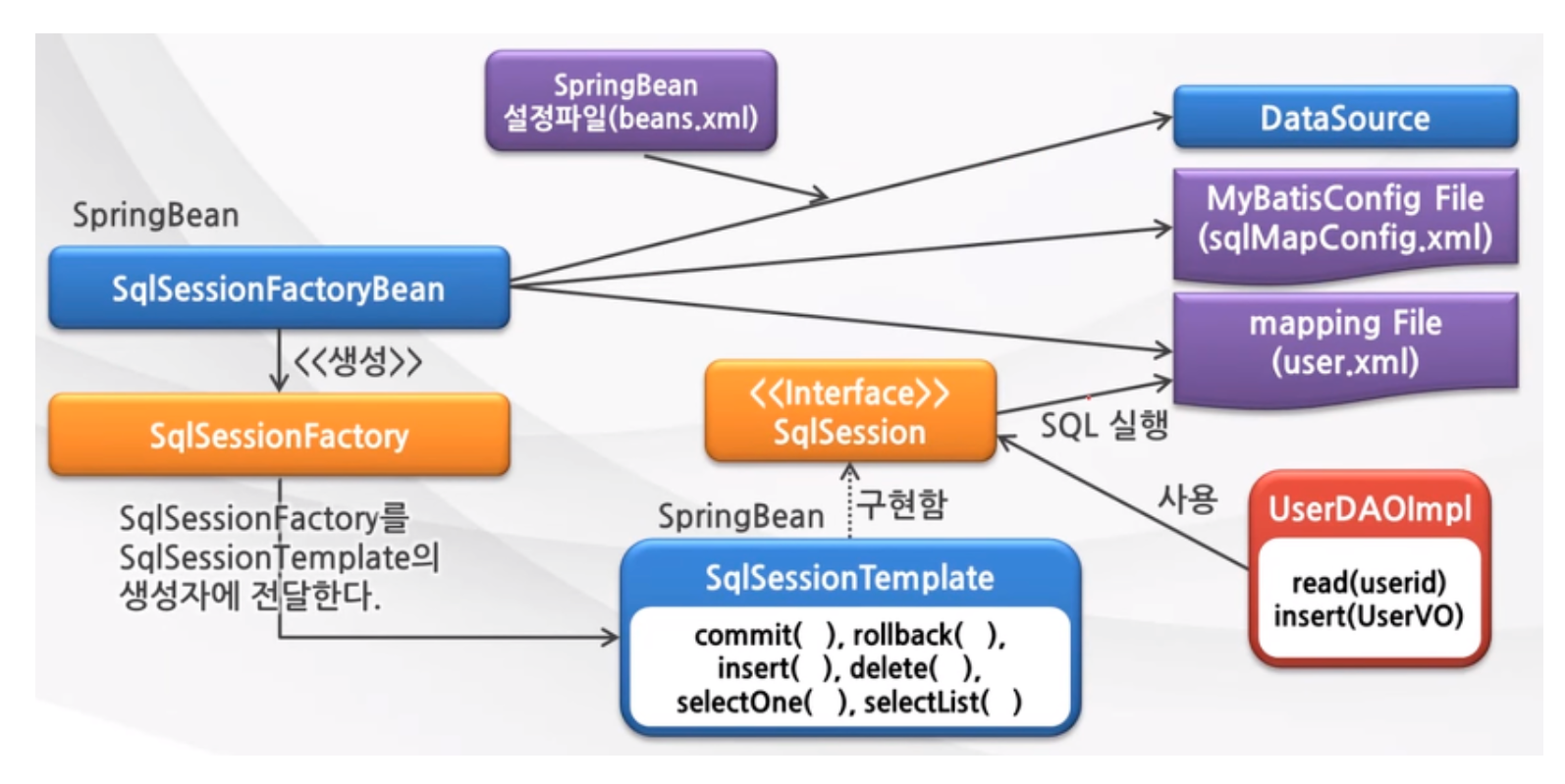 | SqlSessionFactory | SqlSession을 생성 |