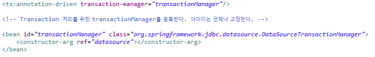 - transactionManager 아이디를 가진 빈은 트랜잭션을 관리하는 객제