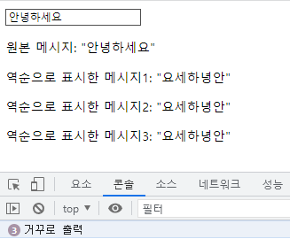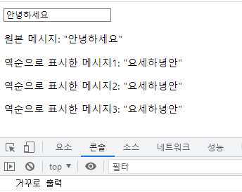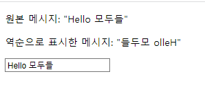 <p>역순으로 표시한 메시지: "{{ reversedMsg }}"</p>