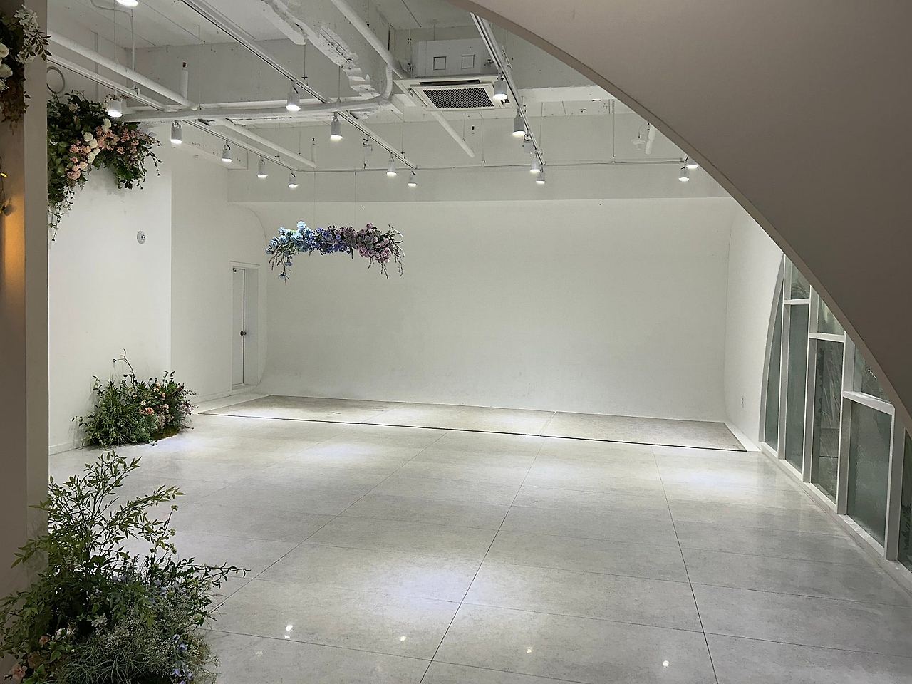 만약 밝은홀을 원하지 않는 경우 뒤의 통창을 가려 어두운 버전도 가능하고,